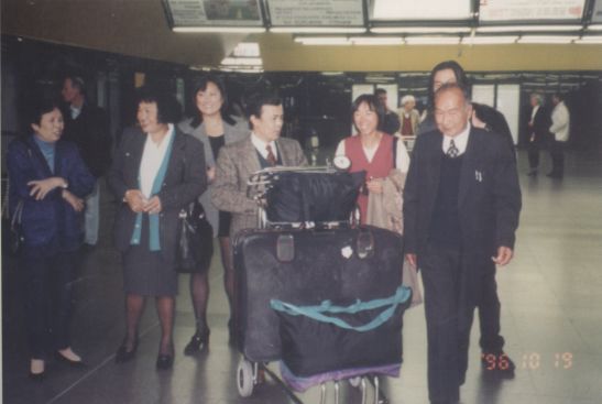 1996年10月19日,胡允迪先生(前右一)最后一次赴意大利步出米兰机场。