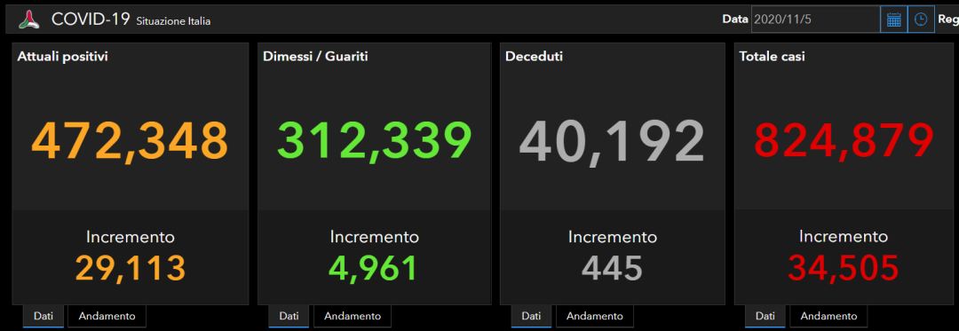 意大利确诊数据:累计确诊824.879人,死亡40.192人,治愈312.339人