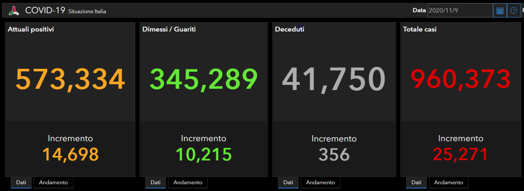 意大利确诊数据:累计确诊960.373人,死亡41.750人,治愈345.289人!
