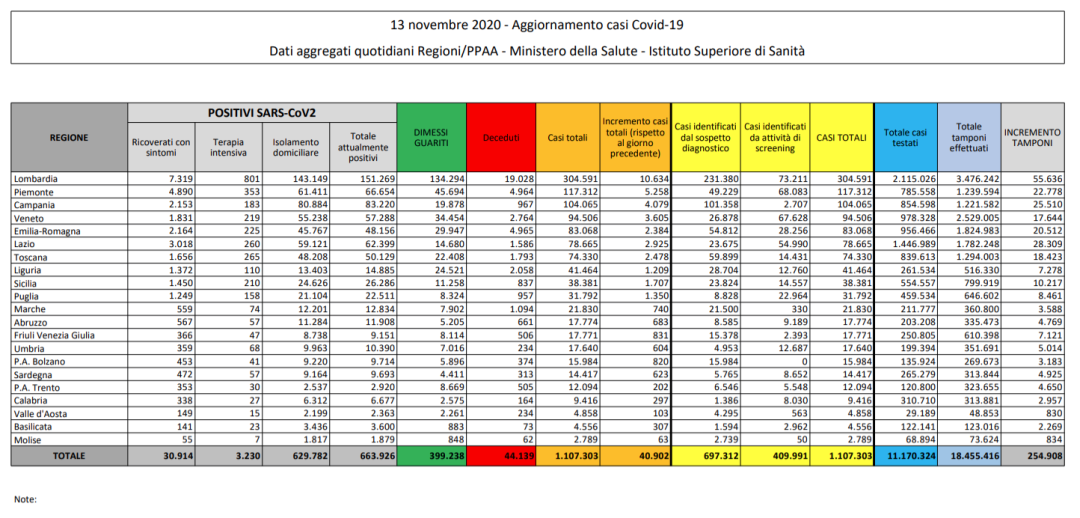 意大利确诊数据:累计确诊1.107.303人,死亡44.139人,治愈399.238人!