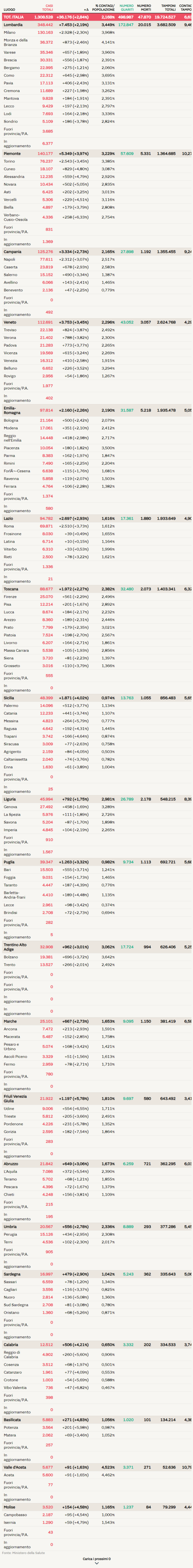 意大利确诊数据:累计确诊1.308.528人,死亡47.870人,治愈498.987人!