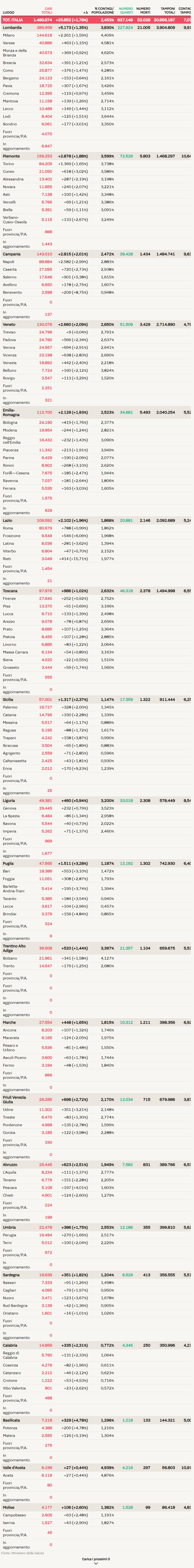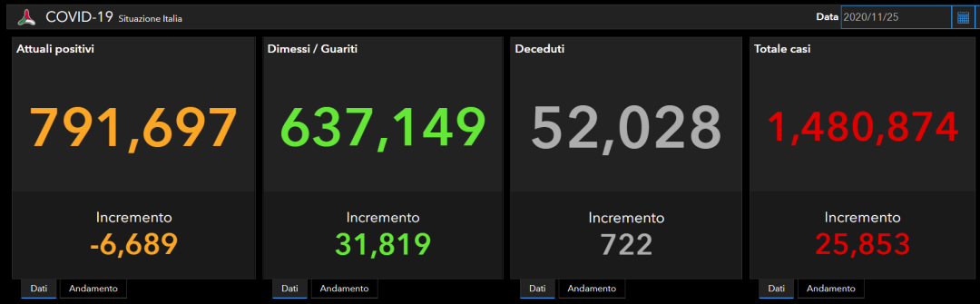 意大利确诊数据:累计确诊1.480.874人,死亡52.028人,治愈637,149人!