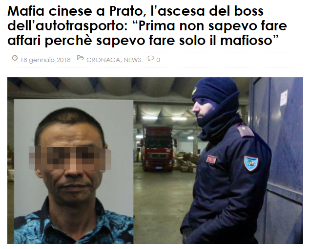黑帮首脑疑为住在罗马的张乃忠(Naizhong Zhang,音译)。警方表示,张乃忠以非法所得建立一间大型运输公司,掌控数千家大陆公司的卡车货运。