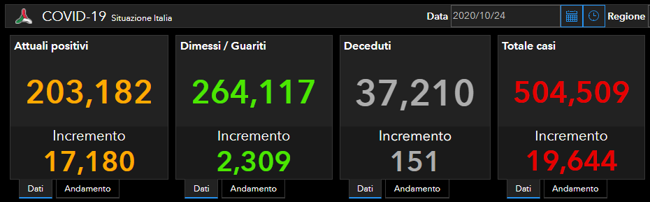 昨天10月23号,意大利有将近有两万例确诊病例,这是自疫情开始以来的最多的一天。 对医疗机构的压力越来越大,伦巴第大区是受影响最严重的地区之一:近5000人确诊;然后就是 Campania 大区,新增超过2000例确诊。