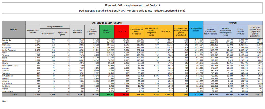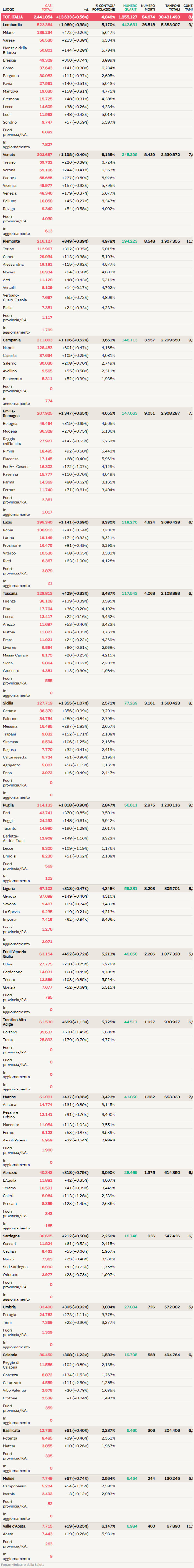 意大利确诊数据:累计确诊2.441.854人, 死亡84.674人, 治愈1.855.127人!