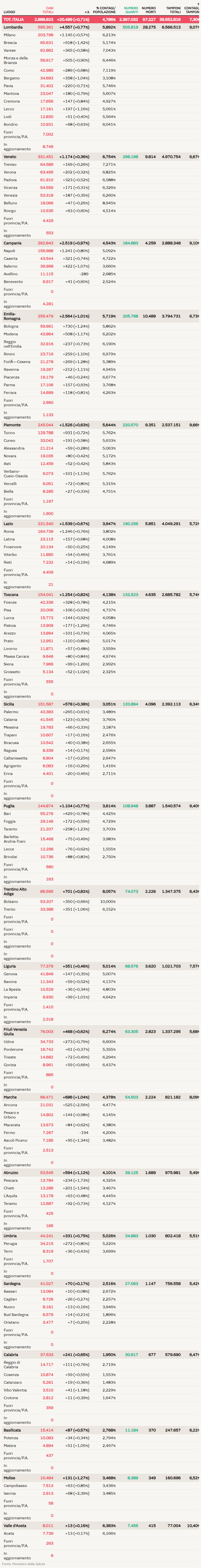 意大利确诊数据:累计确诊2.888.923人, 死亡97.227人, 治愈2.387.032人!