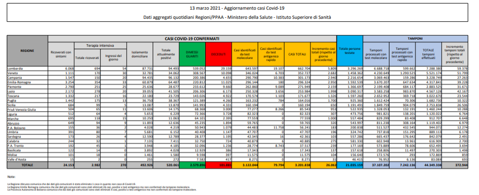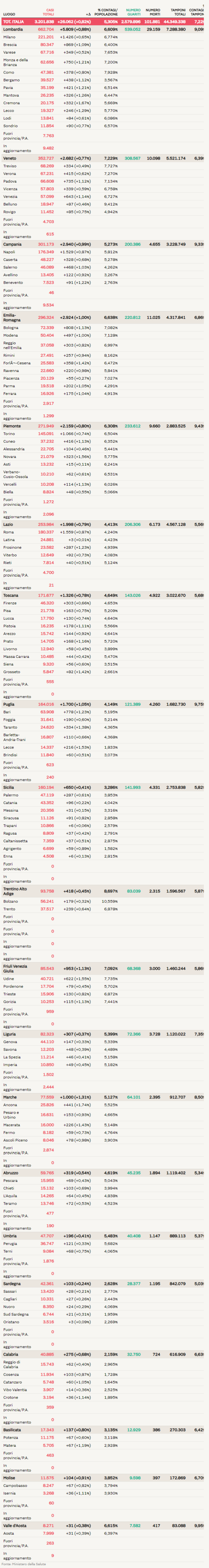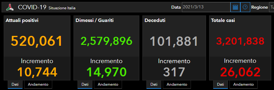 意大利确诊数据:累计确诊3.201.838人, 死亡101.881人, 治愈2.579.896人!