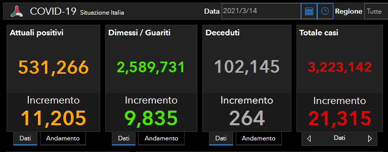 意大利确诊数据:累计确诊3.223.142人, 死亡102.145人, 治愈2.589.731人