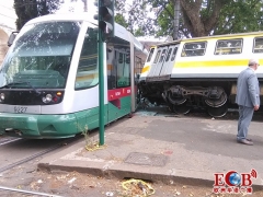 罗马Porta Mggiore小火车电车相撞 车仰人伤损失惨重