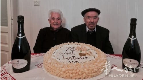 西西里岛一对老夫妻庆祝结婚70周内