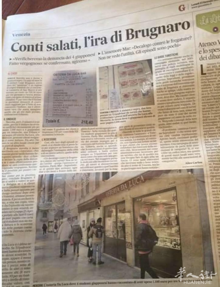 日本游客在威尼斯吃出1100欧天价午餐,餐馆老板确系华人