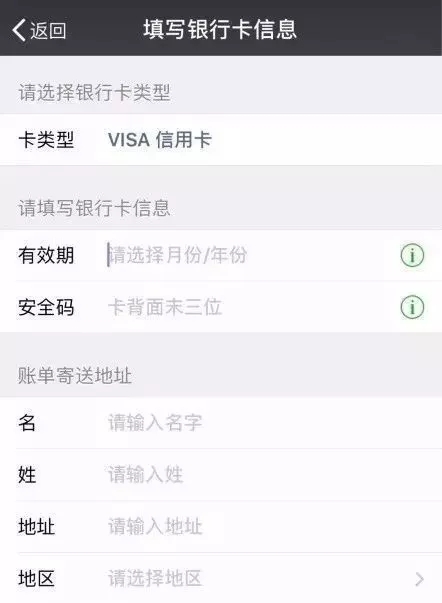如果是海外银行卡,目前只支持绑定Visa、Master、JCB三种信用卡。在这种情况中,绑定时需要验证卡号、有效期、CVN2。