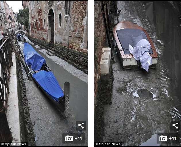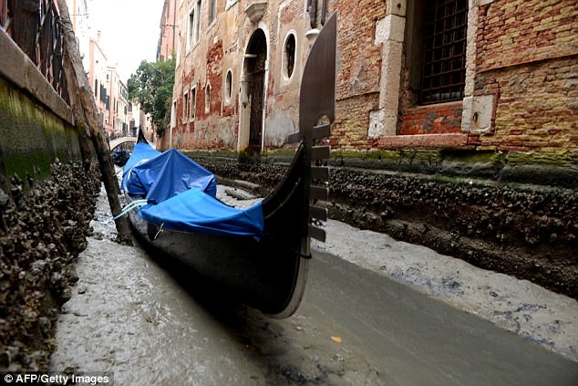 “水城”威尼斯的河道已经干涸。(图片来源:《每日邮报》)