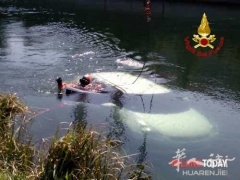 (组图)米兰一汽车司机停车忘拉手刹导致汽车掉入运河中