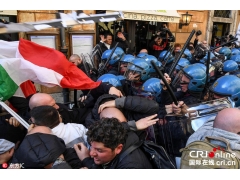 意大利出租车司机罢工集会 与警察发生激烈冲突