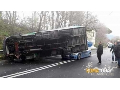 (组图)罗马警察追贼时出车祸导致警车被卡车碾压受伤