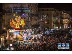 意大利举办西西里岛“最美狂欢节” 花车游行令人眼花缭乱