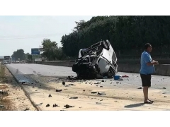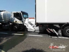 威尼斯一辆面包车被夹在卡车中间导致司机死亡