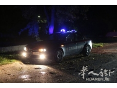 马切拉塔省一华人开宝马失控撞破水管逃逸 导致道路被淹没