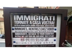 都灵惊现中文争议海报:“移民,回你的家去!”