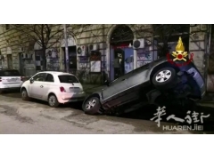 【视频】罗马一街道路面塌陷导致一辆汽车落入坑中