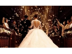 身着白色婚纱,手捧鲜花,天空中飘洒...