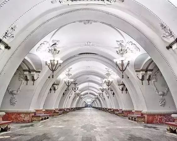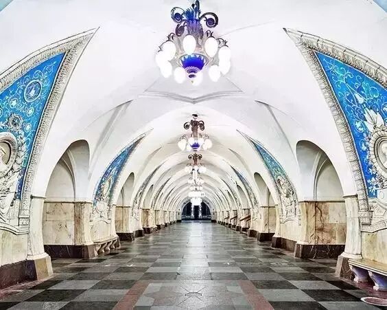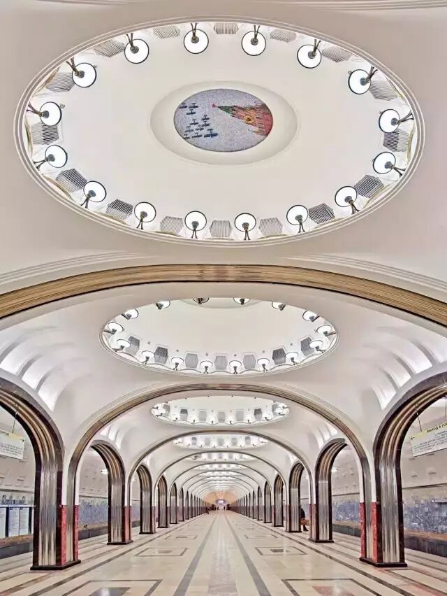 莫斯科的地铁站,总免不了一股浓郁的东欧风情,还带有一点前社会主义国家的色彩。每一个地铁站都富丽堂皇,装饰着令人难以置信的马赛克壁画,描绘了可以追溯到到1200年的俄罗斯历史关键时刻。