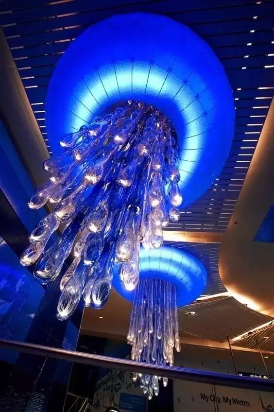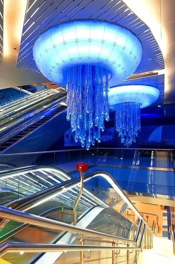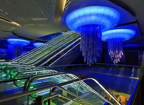 迪拜的哈立德本瓦利德地铁站,凭借一款浮夸的水母造型灯,成功吸引了游客们的目光。结合了传统和现代的设计风格,强烈的颜色对比,给人一种与众不同的视觉刺激与感受。