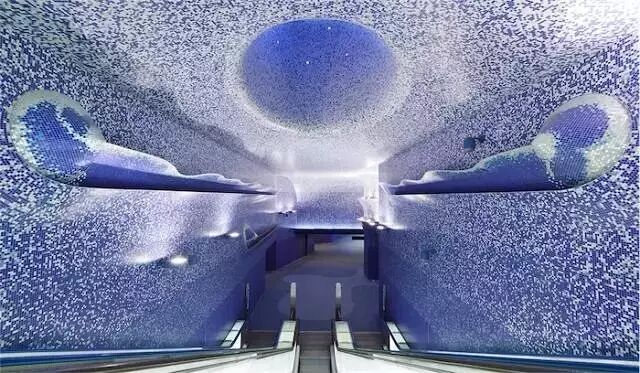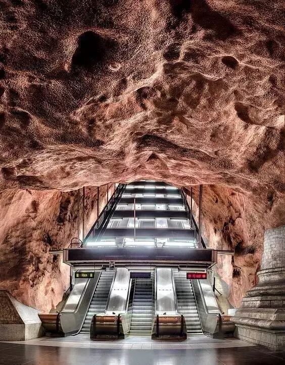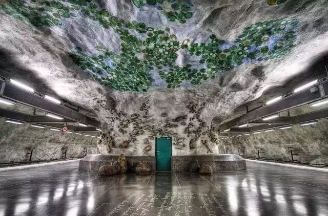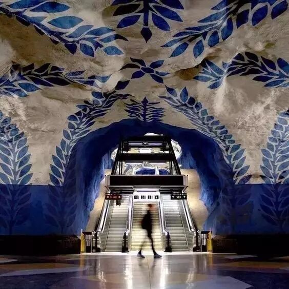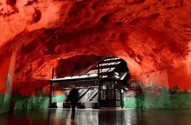 瑞典斯德哥尔摩的地铁站,可称为世界上最大的地铁艺术博物馆 ,在这里可以欣赏到成百上千位艺术家的作品,极富震撼力。部分斯德哥尔摩的地铁站保持了开挖隧道时的石头表面,并邀请艺术家作画或敷彩。