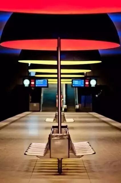 或许德国给人的印象就是冷静、机械、工业的,而慕尼黑这座城市地下却有着无比绚烂的色彩。高纯度彩色的墙面和灯光,让人感到自己乘坐的不是地铁,而是进入了某个游戏世界。每一处都整洁干净倒是继承了德国风格。
