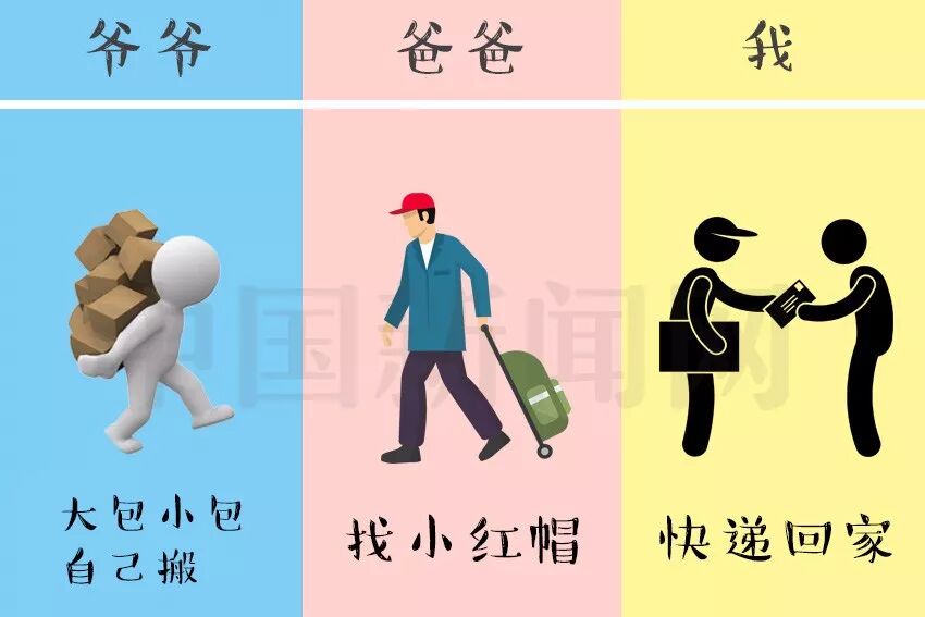 从前,长辈们坐火车回家,总是带着很多行李,从爷爷的蛇皮袋到爸爸的手提箱,各种“容器”各显神通。现在,很多年轻人一个行李箱就够用了。