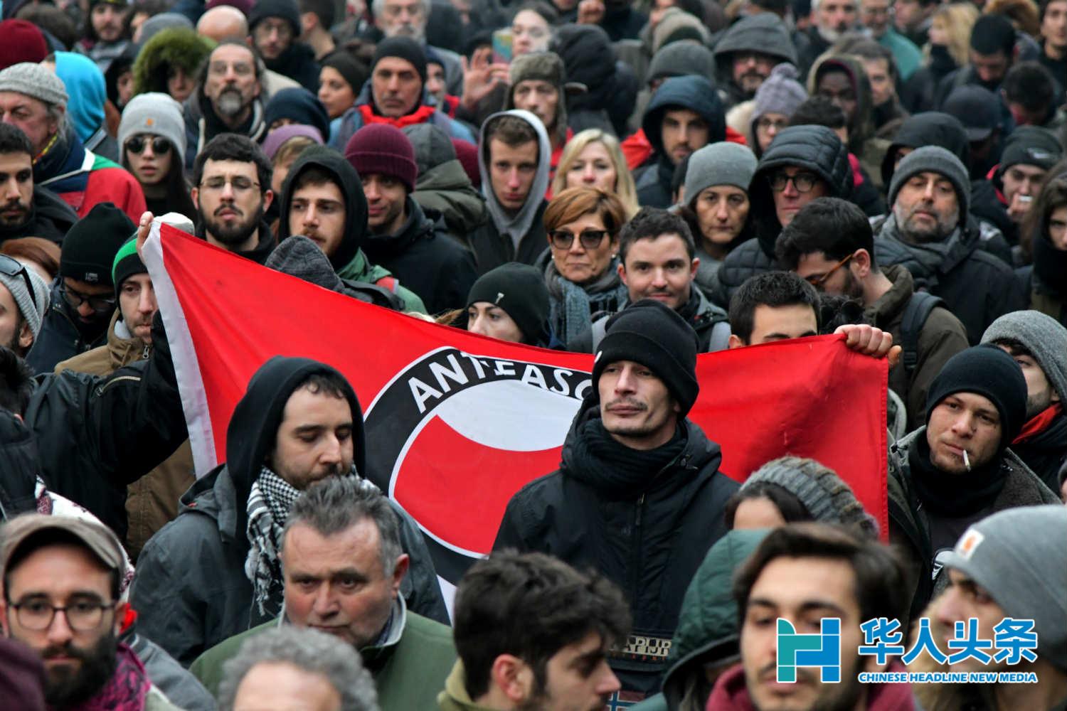 华人头条米兰2月12日电 上周六(10日),意大利中部小镇马切拉塔成千上万的反法西斯示威者举行游行示威活动,抗议极右翼枪手枪击移民事件。
