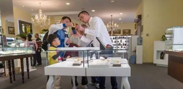 无语的大妈看着中国游客从店内买了一袋又一袋首饰出来,自己却不准进入,感到非常气愤,