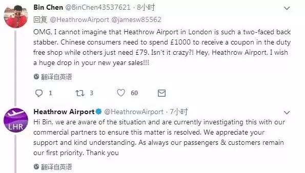 然而,面对广大众多愤怒的中国顾客,希斯罗机场的回应只是千篇一律的: