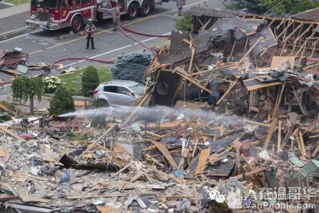 爆炸彻底把Hickory Drive上一栋民宅夷为平地。爆炸现场惨不忍睹。房屋基本只剩下废墟。