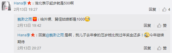 “记得从上学的时候开始,奶奶给我的压岁钱就固定在每年3000块了,一直给到我结婚。所以现在回想起来,如果考虑到物价因素,学生时代应该是我人生中最富裕的时光。”在上海工作的厦门网友莎莎这样调侃道,引来网友一片羡慕。