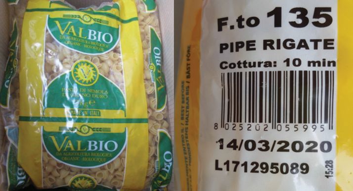 意大利Blastingnews网站消息,被召回的意大利面由Valdigrano di Flavio Pagani Srl公司生产,商品名称为“Pasta di semola BIO - PIPE RIGATE 135”,生产批号为“L171295089”,包装规格3千克。