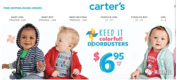 carters.com:美国婴幼儿童装的知名品牌,衣服质地优良,款式好看。尤其成套的小童装深受妈妈们欢迎,免去了搭配烦恼,价格还很美丽。