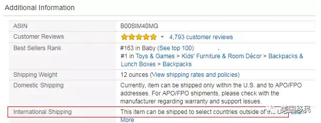 第三步,在商品页面的下端看是否有This item can be shipped to select countries outside of theU.S. 的描述,这个代表可以直邮。