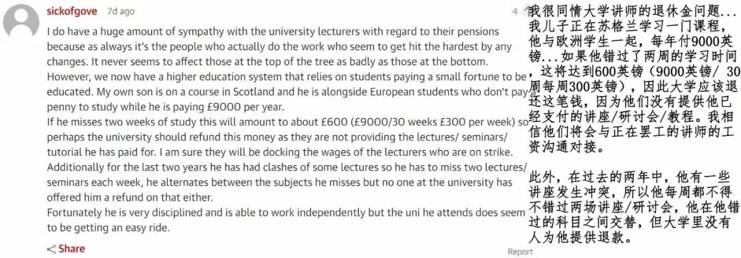 正如英国人所担心一样,“比起要求赔偿,这些学生更焦虑的是自己的前途!那些苦读几年即将工作的学生,现在都不知道什么时候能毕业,未来在哪里!如果高校和工会一直闹下去,一代人的利益都被侵害!”