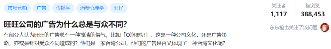 旺旺的广告有多俗?俗到知乎专门有个专题去分析它俗在哪。