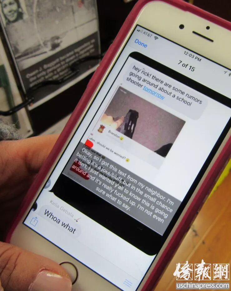 这些传言通过学生们常用的社交媒体软件Snapchat传播,除了一张不明人士手持枪支的图片外,更附有文字称,有人要去学校作案,让学生第二天不要去上课。