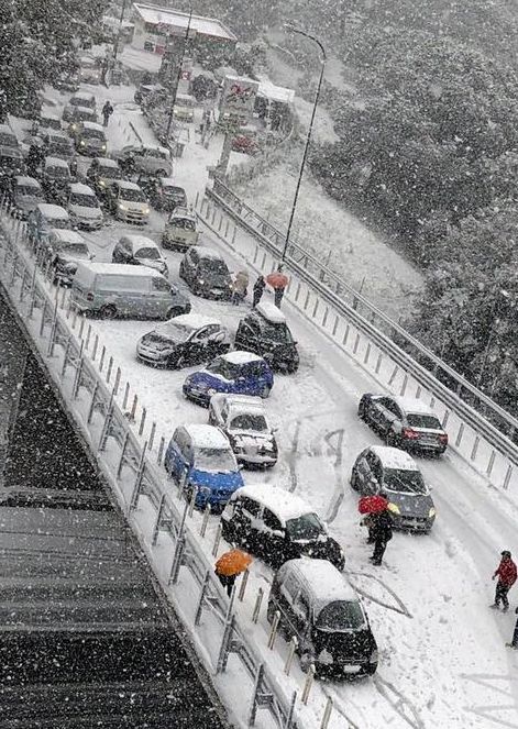 气象预报警告称,周三意大利各地会出现霜冻高峰,最低气温降至零下7摄氏度,另一波可能带来新雪的低压气流将于周四入侵意大利。尽管从本周四下午开始各地气温将开始逐步回暖,但届时会出现持续降雨。预计到本周末意大利南部地区温度将回升至18到20摄氏度。为应对可能出现的霜冻,米兰市区部分路面已被撒上盐。一场大雪囧况百出,铁路运输几乎全线瘫痪,对于这样的混乱,意大利消费者组织不依不饶对交通部门提起指控。拉齐奥大区负责人也表示,铁路运输陷入瘫痪对通勤者们造成的干扰是不可原谅的,有关部门必须查清列车延误或取消的根本原因。有人担心持续数日的恶劣天气可能会影响到本周日举行的全意大选投票,不过,大雪当前,谁还需要选举?