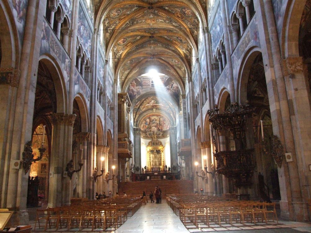 帕尔马大教堂 Cattedrale di Parma(Duomo di Parma)位于广场东侧,是一座精美的伦巴第-罗马风格建筑,它在1106年举行了奉献礼。教堂内拥有巴罗克风格的镀金讲道坛和灯架,以及柯勒乔(Antonio Correggio)的绘画《圣母圣天》(Assunzione della Verdine)。