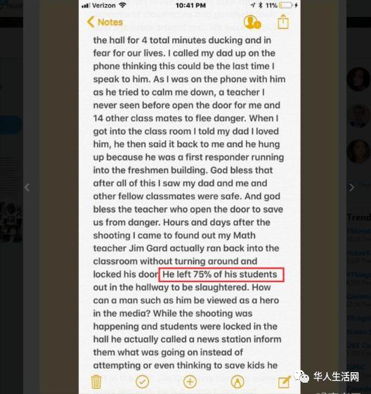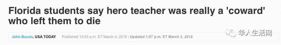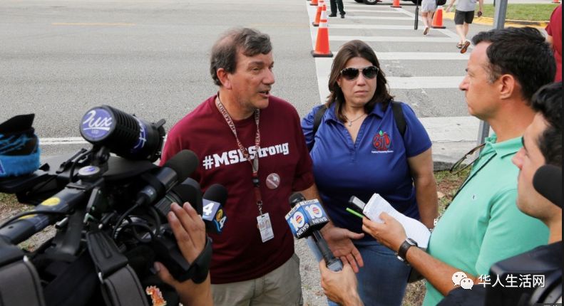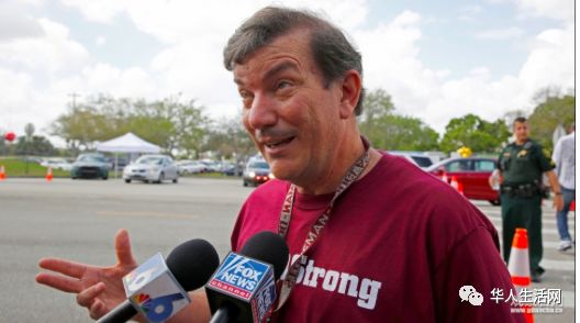 在这场导致17名高中生丧命的悲剧中,除了放弃自己生命救同学的华裔男孩Perter Wang外,还有一个美国老师也成了英雄,据媒体最开始的报道事发当天他“带领学生躲进教室”。