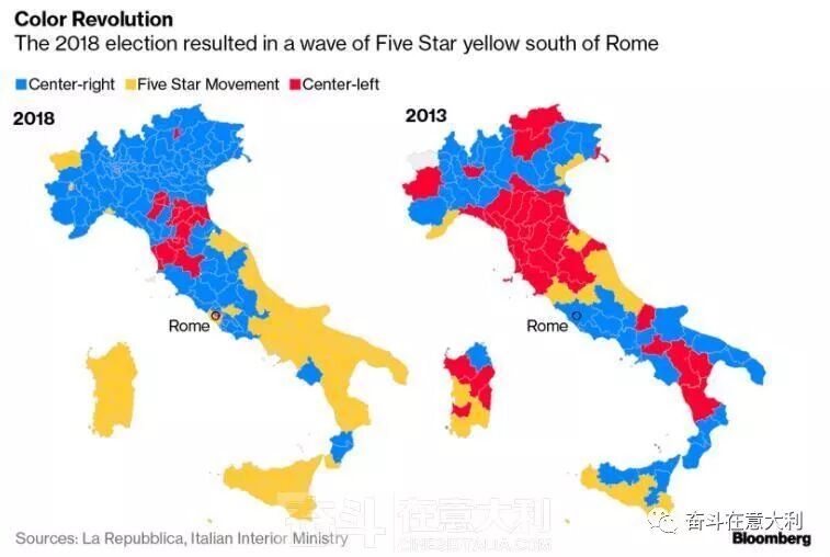 从地域分布看,意大利北部地区大多投向了中右翼联盟,而南部地区则沦为了五星运动的天下。