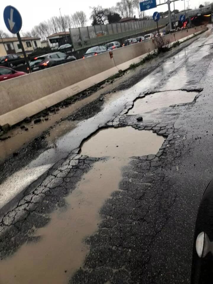 罗马市长拉吉(Raggi)在去年所推出的“新道路”计划并没能给罗马的道路问题带来改善。近几日,在接连不断的大雨之后,Via Laurentina街和Via Ardeatina街等多条道路的路面坑洞已致使许多汽车发生抛锚情况。