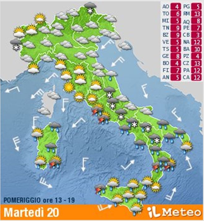 以为意大利已到春暖花开时的小伙伴们,恐怕本周末大家又得重新找出厚厚的外套和围巾,准备迎接下周二(20日)再次到来的低温天气了!