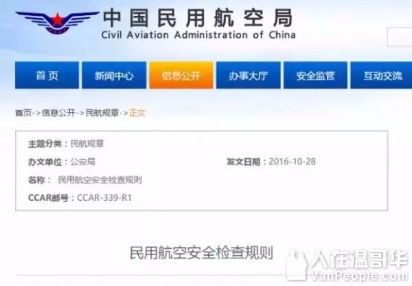 那么我们就来看一下这个检查规则。通过“中国民用航空局”官网,可以查到相关内容。