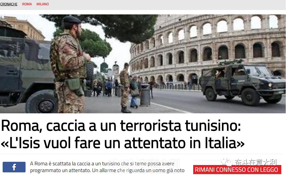 据意大利媒体报道,奋斗在意大利编译:3月25日,突尼斯政府收到一封匿名信,信中说一名42岁的突尼斯籍恐怖分子现在正准备在意大利首都罗马市中心发动恐怖袭击,突尼斯大使馆将消息通报给了意大利警方。